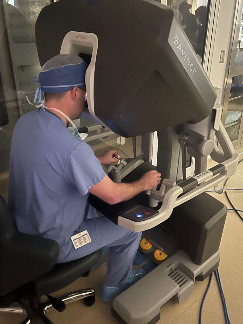 “With the single port technology, we’re able to get inside the patient’s abdomen and inside the rectum, then fan the instrumentation out and rotate the robot to any location we need.”